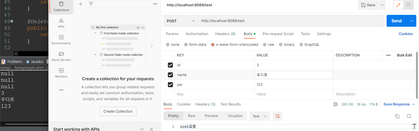 get을 제외한 post, put, delete는 직접 확인이 어려워 postmas이라는 api 플랫폼을 이용해 확인을 해볼 수 있다.